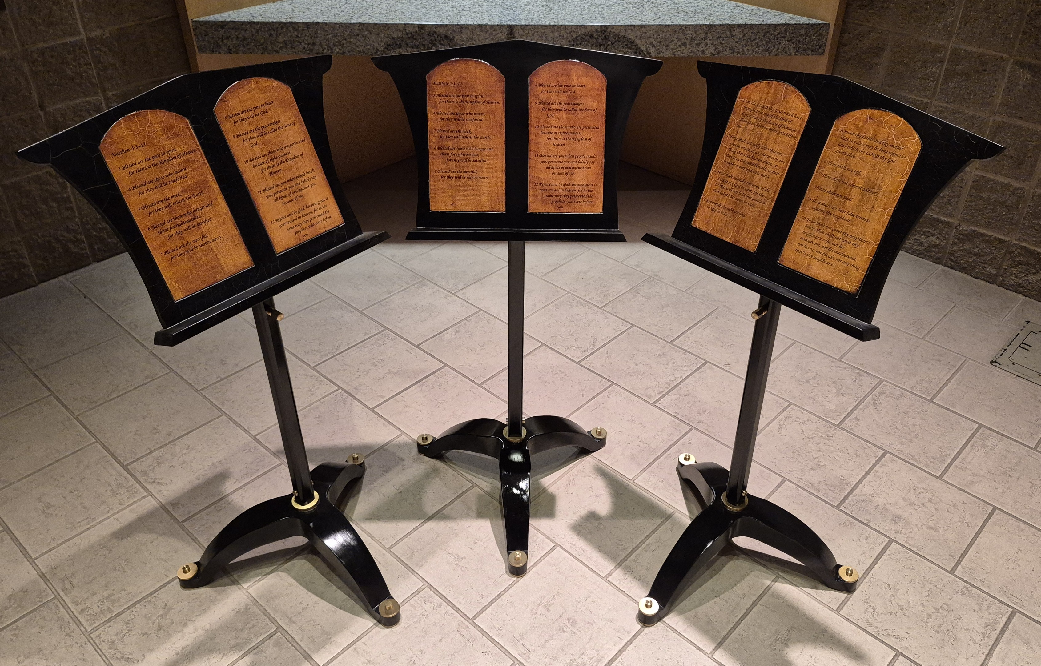 Two Reading Podiums and a Case on Stand designed to hold and display a set of large Historic Bibles and Theological Writings. This is a piece that will be installed at the William Perkins Library of the Puritan Reformed Theological Seminary in Grand Rapids Michigan.